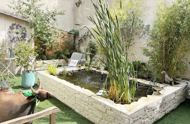 At the center of the house, a beautiful interior courtyard with a green patio and pond invites you to relax in complete privacy. The property also benefits from a garage with a mezzanine offering additional storage space.