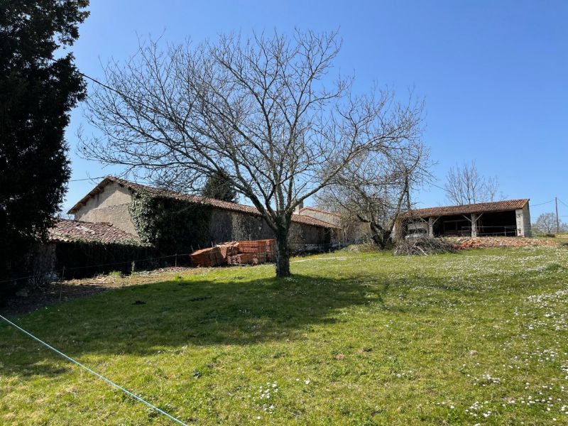 Située dans un environnement calme et verdoyant, cette très ancienne maison à usage d\'habitation offre un beau potentiel pour les amateurs de rénovation. Entièrement à rénover, elle permet de concevoir une habitation d\'environ 180 m² selon vos envies et vos projets. Un terrain attenant de 6 100 m² vient compléter l\'ensemble, idéal pour profiter d\'un bel extérieur, développer un jardin ou accueillir des animaux. Plusieurs dépendances sont également présentes dont un grand auvent de 85 m² (non attenant), idéal pour le stationnement de véhicules, ou pouvant être aménagé en écurie. L\'électricité et l\'eau sont déjà raccordés grâce aux compteurs présents sur place. Le DPE n\'a pas été effectué car la maison ne dispose d\'aucun systeme de chauffage. À proximité des communes de Blanzac et Montmoreau, cette propriété bénéficie d\'un cadre paisible, tout en restant à seulement 25 minutes au sud d\'Angoulême. Un bien rare pour ceux qui souhaitent créer un lieu de vie unique, avec de belles possibilités d\'aménagement.