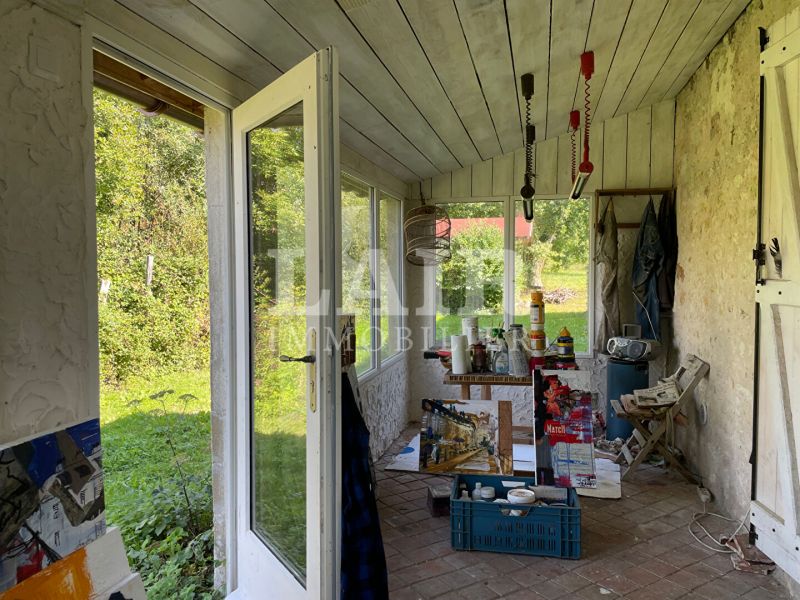 Elle offre, au rez-de-chaussee, un salon avec une cheminee en pierre, un espace salle a manger, une cuisine qui donne sur une veranda, une chambre et une salle de bains avec douche et toilette.