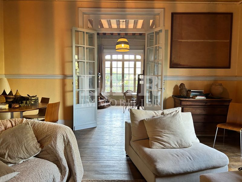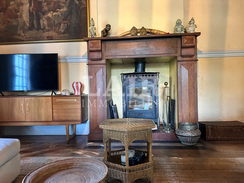 Le rez-de-chaussee offre une entree accueillante desservant une vaste salle a manger familiale ouverte sur la cuisine. Le salon, accessible par une large double porte vitree, beneficie d\'une belle double exposition et d\'une cheminee, apportant chaleur et caractere a la piece.