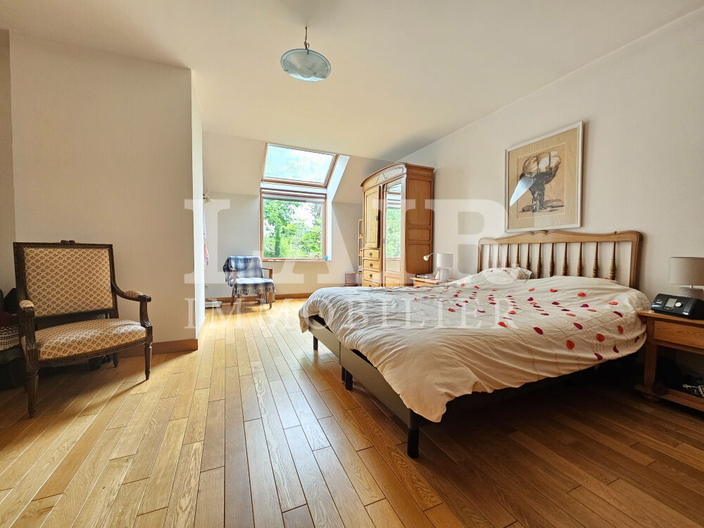 A l\'etage une mezzanine dessert une suite parentale avec douche, wc et dressing, ainsi que 3 chambres et une salle de bain.