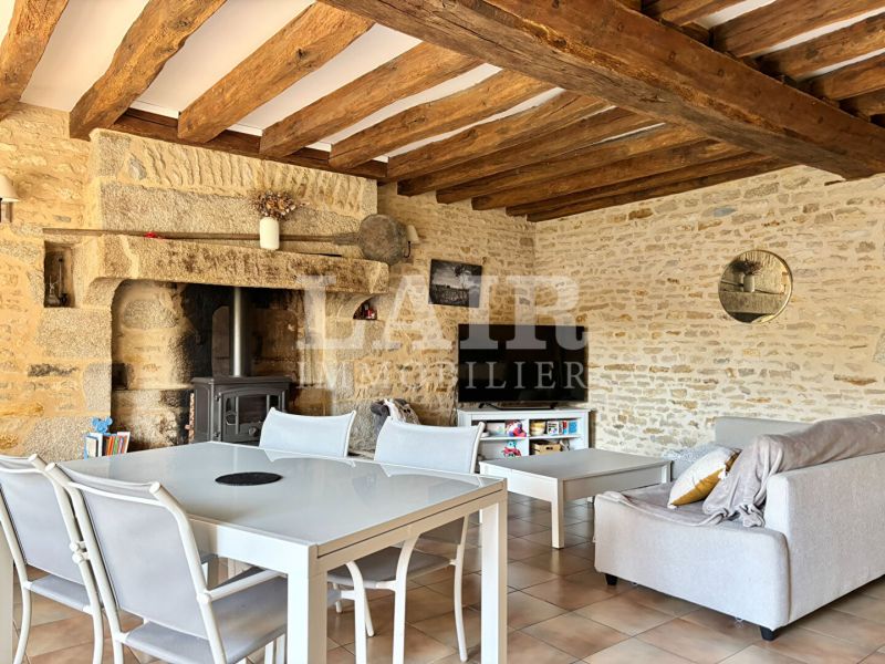 Cette longere qui a conserve tout son charme avec pierres et poutres apparentes, se compose au rez-de-chaussee : d\'une entree donnant sur une cuisine amenagee et equipee, un beau sejour avec poele a bois, une veranda chauffee, une salle de bains avec douche et baignoire, buanderie, wc, et une chambre.