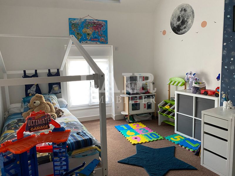 Sur plusieurs etages, la maison se compose de la facon suivante: Une belle entree avec rangements, un sejour ouvert sur une cuisine amenagee et equipee, un salon avec cheminee/poele a bois, 5 chambres, 2 salles de bains et toilettes.