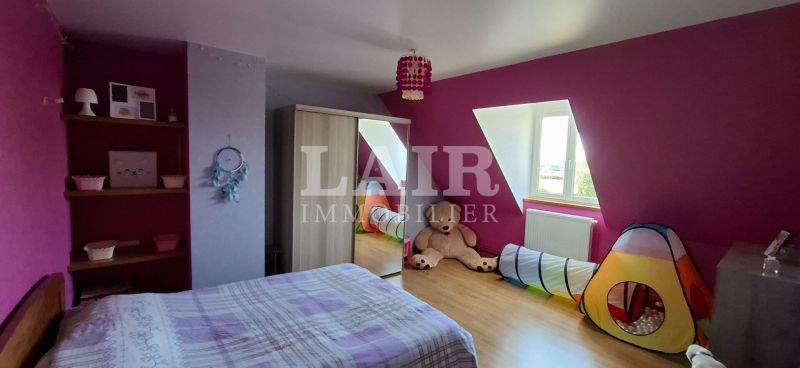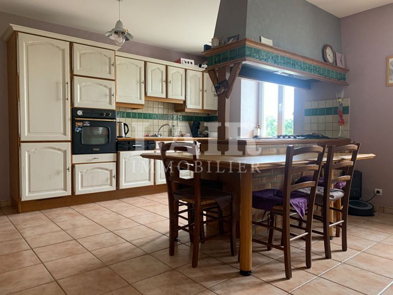 Le rez-de-chaussee s\'ouvre sur une vaste piece de vie lumineuse de 80 m2 comprenant un sejour et une cuisine amenagee et equipee, une cheminee avec insert. Vous y trouverez egalement une buanderie avec de nombreux placards, un WC, une salle de bains equipee d\'une douche ainsi qu\'une chambre de plain-pied dotee de rangements integres.