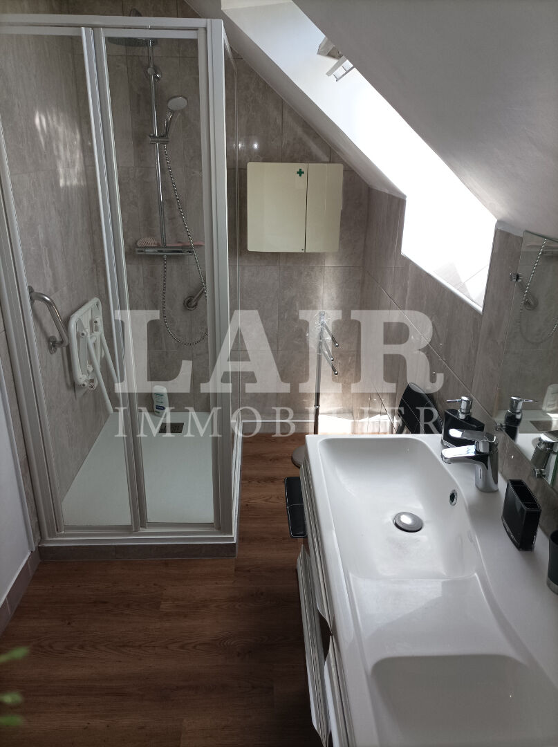 - A l\'etage vous disposerez d\'un couloir desservant une salle d\'eau recente (avec douche et double vasques), un bureau (ou petite chambre), une chambre, un wc et autre chambre avec acces dressing.