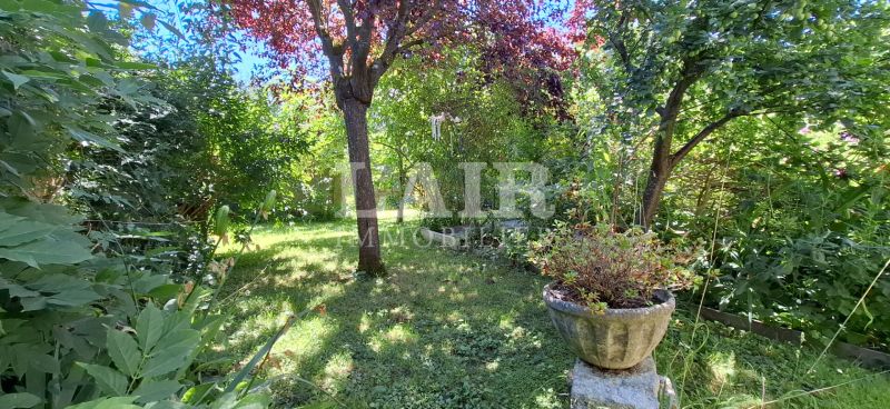 En exterieur une terrasse (avec store electrique) et un jardin arbore, entierement clos de murs, plein de charme avec un petit cabanon, le tout pour une contenance de 367m2 (constructions incluses)