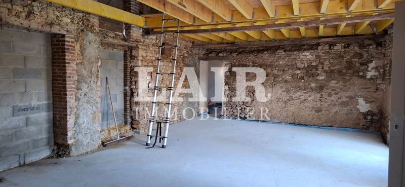 Le gros oeuvre a deja ete realise, avec un travail de maconnerie significatif incluant le retrait d\'un mur porteur a l\'interieur. Des ouvertures ont ete creees, offrant ainsi une grande piece de vie, un espace cuisine, et la possibilite d\'amenager des chambres a l\'etage, ainsi qu\'une salle de bain. Une dalle de beton a ete posee sur l\'ensemble du batiment, avec polyane et isolation, et les evacuations ont ete integrees.